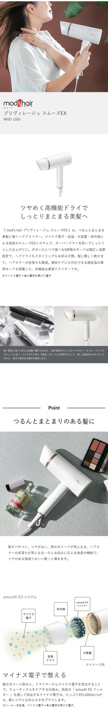 [ モッズ・ヘア プリヴィレージュ スムーズEX ]ヘアドライヤー ドライヤー モッズヘア マイナスイオン 髪 大風量 ヘアードライヤー 風量2段階 低温 温風 冷風 遠赤外線 色落ち防止 おしゃれ ホワイト mod’s hair smooth EX MHD-1263
