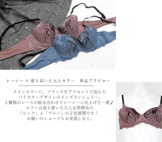 商品名(商品番号):バイカラー レーシー 大人 可愛い 初メンズブラにオススメ A85-A105 メンズ体型用 パッド入り 単品 ブラジャー (jm-3598-b)
