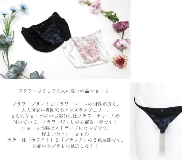 フラワープリントとフラワーレースの相性が良く、大人可愛い雰囲気のメンズランジェリー。さらにショーツの中心部分にはフラワーチャームが付いていて、フラワー尽くしの心躍る一着です!ショーツの脇はストラップになっており、程よいセクシーさも◎カラーは「ホワイト」と「ブラック」の2色展開です。お揃いのブラもお見逃しなく! 商品名(商品番号)フラワー尽くし 大人可愛い メンズランジェリー挑戦 M-4L メンズ体型用 単品 ショーツ (jm-1250-s)