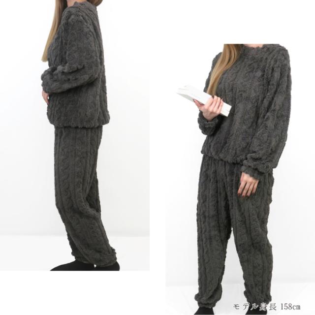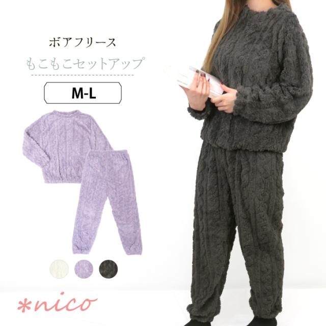 ボアフリース もこもこセットアップ 可愛い 韓国 ルームウェア 人気(4763)[メール便不可]【パジャマ レディース 女性 部屋着 秋物 冬物 秋冬物 長袖 寝巻 かわいい あったか 上下セット】