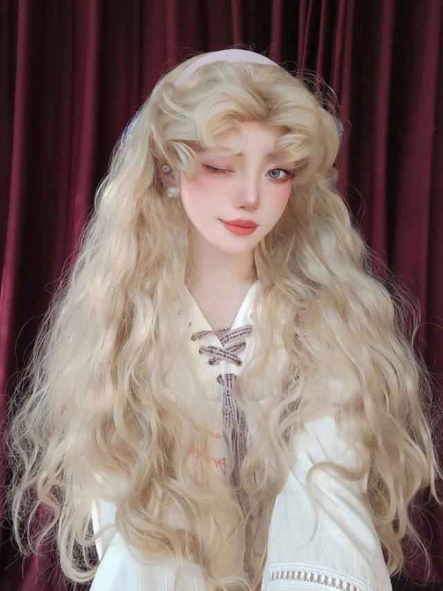 中世の貴族風 巻き毛 ゴールド髪 フルウィッグ かつら 女性 長髪 ロングウィッグ ロングヘア ロリータ lolita 前髪あり 自然 可愛い wig コスプレ 耐熱ウィッグ 小顔効果 コスチューム 仮装 文化祭 学園祭