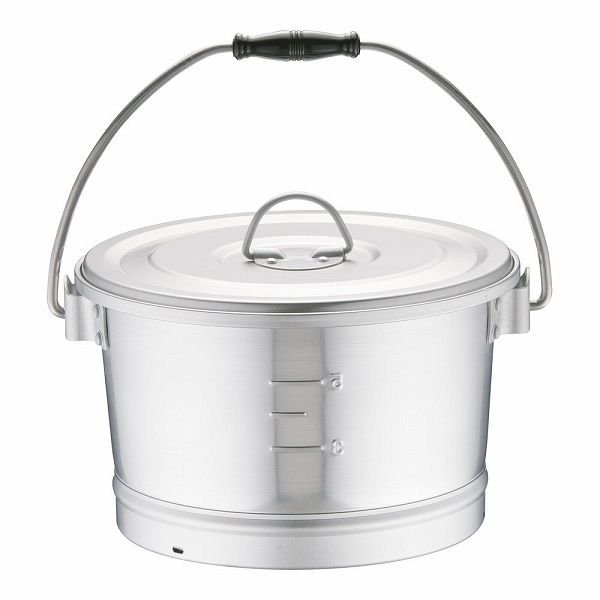 オオイ金属 アルマイト 丸型一重食缶 6L にぎり1ヶ付 211(ASY17211) 一重食缶 給食缶 汁食缶 食缶 給食 汁物 スープ 保温 運搬 学校給食 蓋 ふた フタ 目盛り アルミ