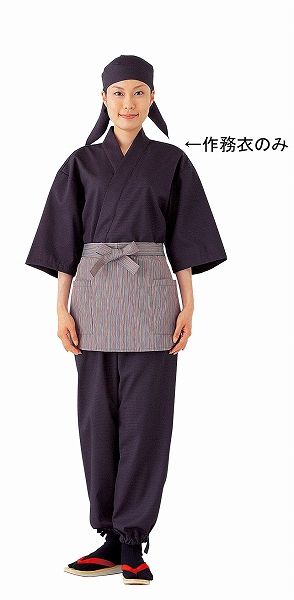 男女兼用作務衣 黒×エンジ M 格子和柄 SLB699-2(SSM3902) サービスウェア 和衣 作務衣 上衣 ユニフォーム 制服 接客 ユニセックス 和風 ブラック