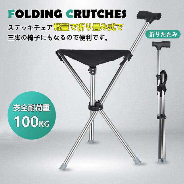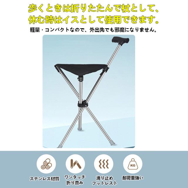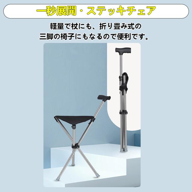 ステッキチェア 軽量 杖 ステッキ 折りたたみ イス 一本杖 三脚 自立式 ステッキ椅子 座れるステッキ 歩行補助杖 祖父母 敬老の日 プレゼント