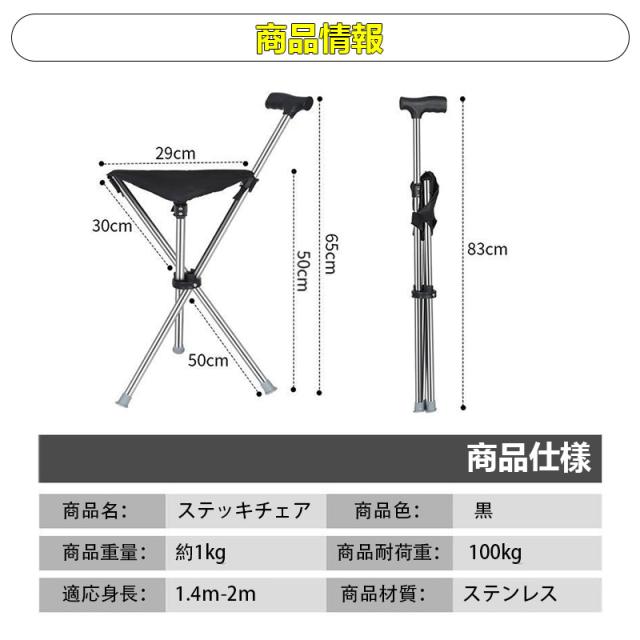イス 椅子 座れる杖 杖 折りたたみ 軽量 三脚 チェアー 椅子 イス ゴルフ 休憩 軽量 ステッキチェア 女性 座れるステッキ 歩行補助杖 介護