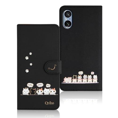 Qribo Xperia 5 V ケース 手帳型 エクスペリア5 V カバー SOG12 ケース SO-53D ケース シンプルなのに可愛いデザイン エンボス加工猫柄