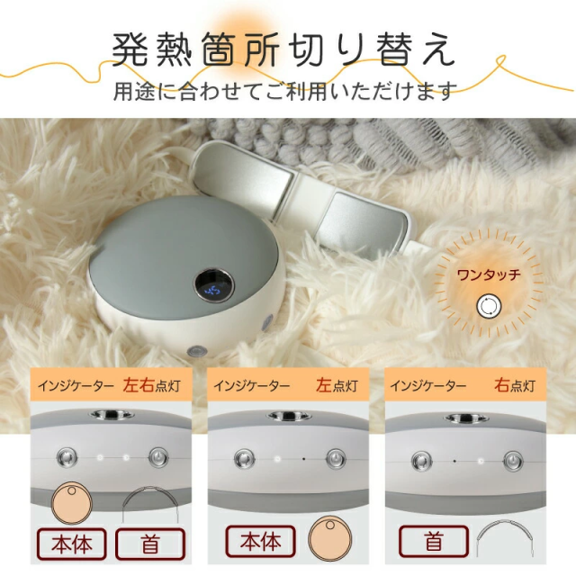 ●発熱箇所(首・手先)切り替え機能。