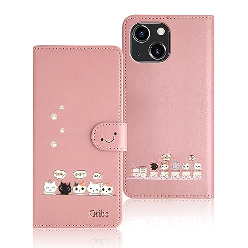◆商品名:Qribo i Phone14 ケース 手帳型 アイフォン14 ケース i Phone 14 ケース シンプルなのに可愛いデザイン エンボス加工猫柄 うれしい気持ち 6
