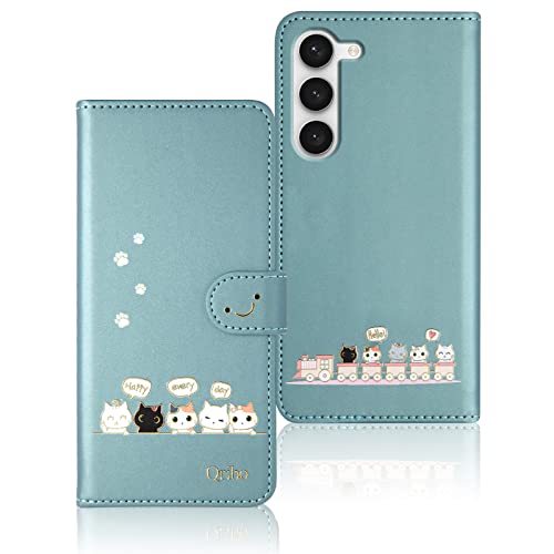 ◆商品名:Qribo Galaxy S23 ケース 手帳型 SC-51D ケース Galaxy S23 手帳ケース シンプルなのに可愛いデザイン エンボス加工猫柄 うれしい気持ち