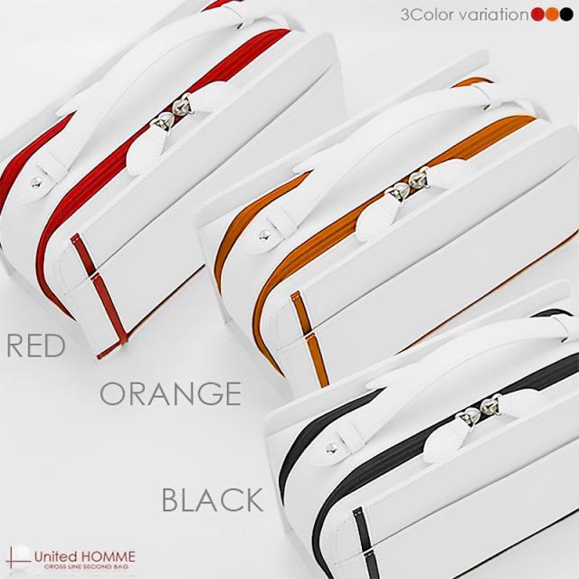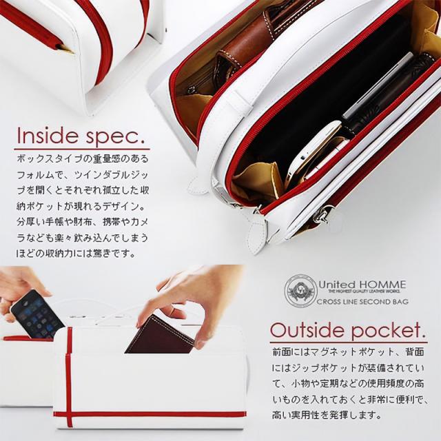 セカンドバッグ メンズ クロスライン 馬革 レザー ダブルファスナー ホースレザー ダブルジップ ホワイト United HOMME 鞄