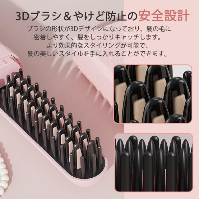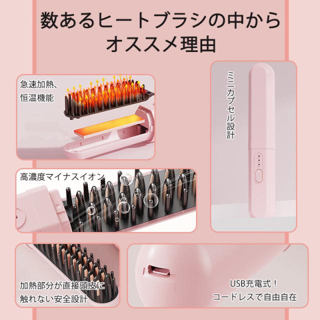 ヘアアイロン ストレートアイロン ヘアアイロンブラシ コードレス ヒートブラシ マイナスイオン くせ毛 うねり USB充電式 携帯用 美髪