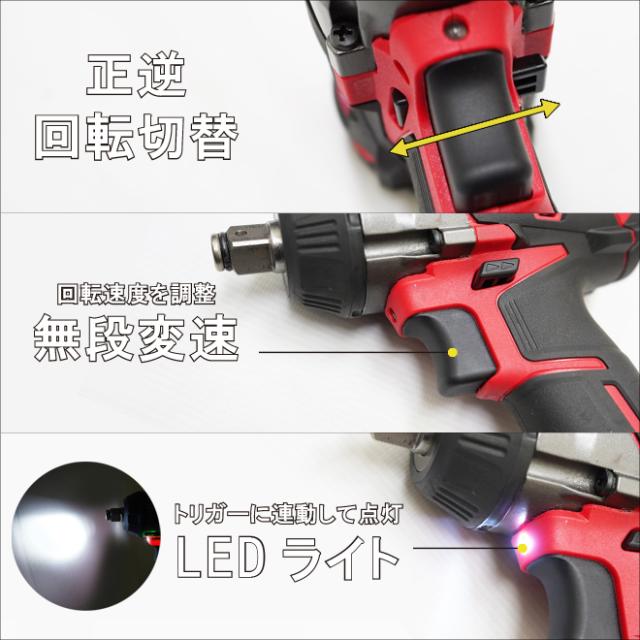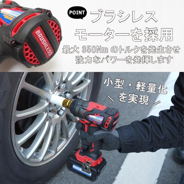 電動インパクトレンチ ソケットプレゼント タイヤ交換 充電式 1/2DR(12.7mm)350Nm 18V コードレス ブラシレスモーター リチウムイオンバッテリー KIKAIYA