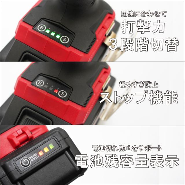 | 無負荷回転数 | 打撃モード(強)/0〜2600rpm 打撃オード(中)/0〜2000rpm 打撃モード(弱)/0〜1600rpm |