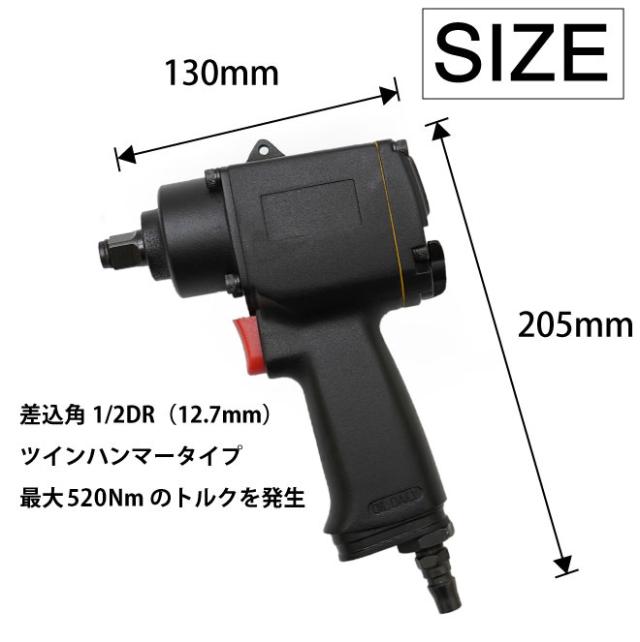 インパクトレンチ ソケットプレゼント タイヤ交換 ミニ エアーインパクトレンチ 1/2DR 軽量 KIKAIYA