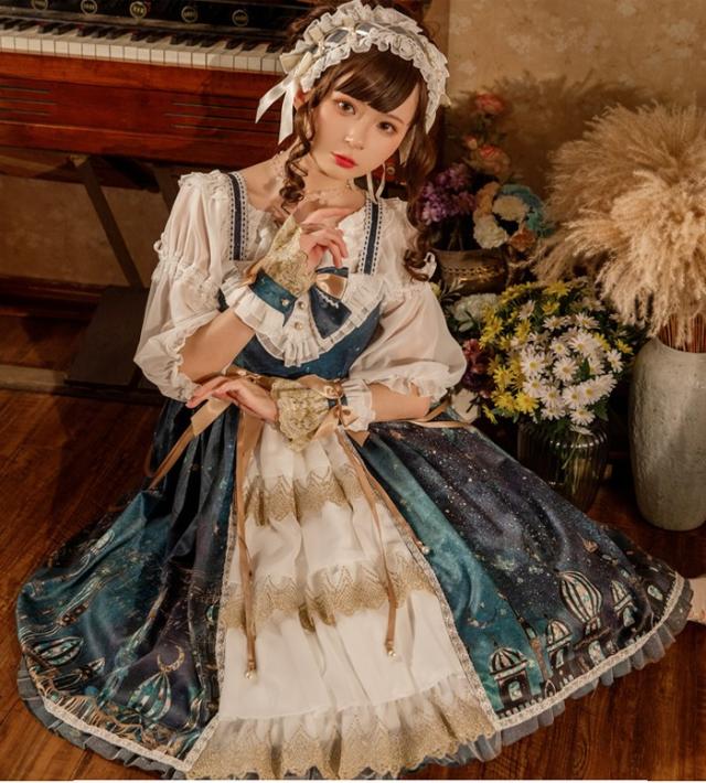 ワンピース ロリータ コスプレ 衣装 姫 ドレス 長袖 森ガール 萌え ゆめかわいい レトロ 中世紀 宮殿風 貴族風 リボン ボリューム 水色 緑 パーティー 学園祭 イベント aa145zbzbx7xq aa145zb