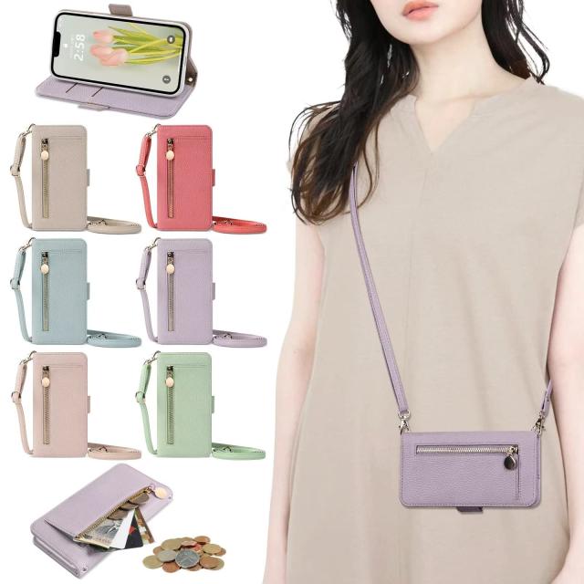 YerlyLan i Phone SE第3世代 ケース 財布型 アイフォン SE第2世代 ケース 手帳型 ジッパー式 大容量ショルダーケース ストラップ付き