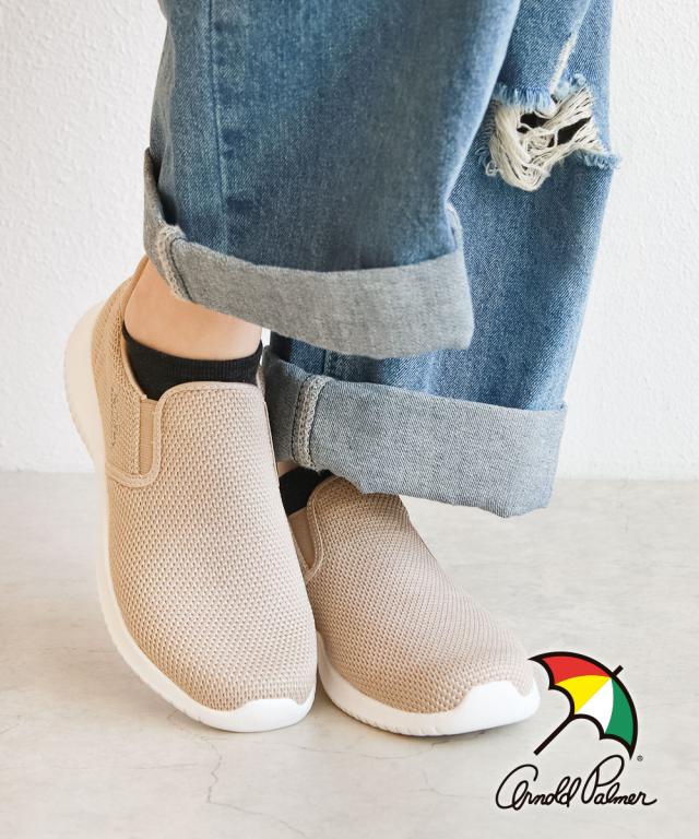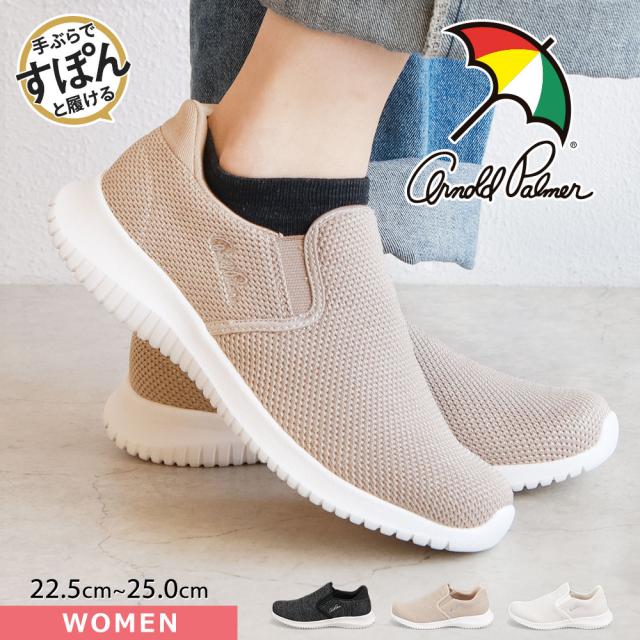 アーノルドパーマー スニーカー レディース ローカット スニーカー スリッポン 手ぶらで履ける スライドフィット 立ったまま履ける ニット ジュニア 黒 通学 ウォーキングシューズ ジム フィットネス 疲れにくい 痛くない シンプル おしゃれ ホワイト ブラック ベージュ 1202