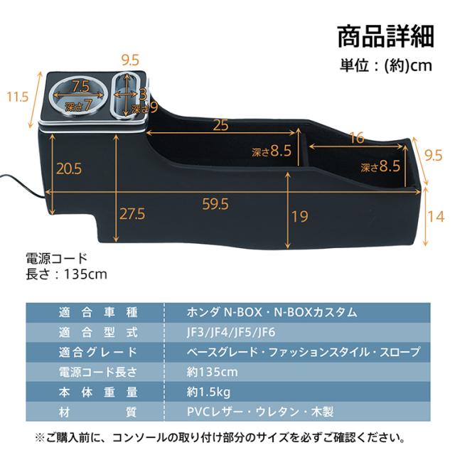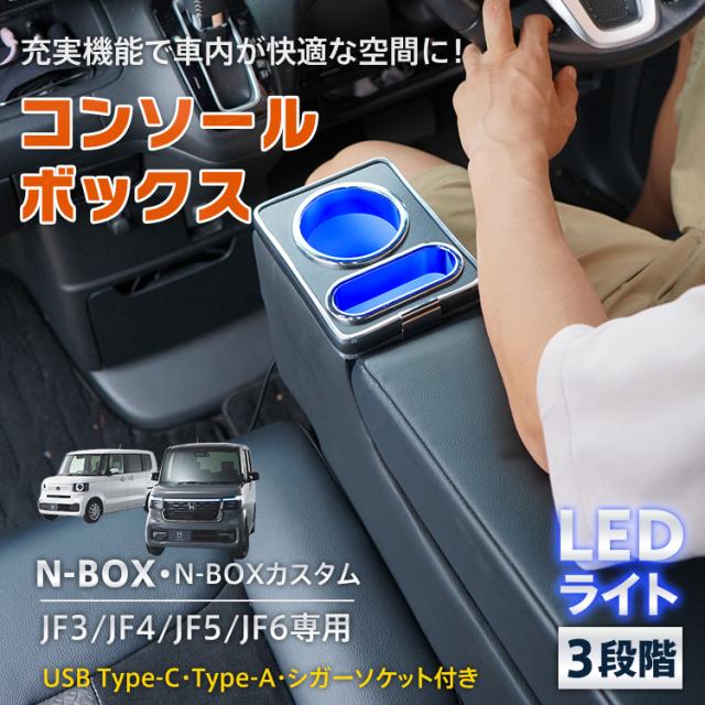 コンソールボックス N-BOX カスタム JF3 JF4 JF5 JF6 専用設計 LED ライト センターコンソール カー用品 車 パーツ 内装 収納ボックス ドリンクホルダー スマホホルダー PVCレザー シガーソケット ee404