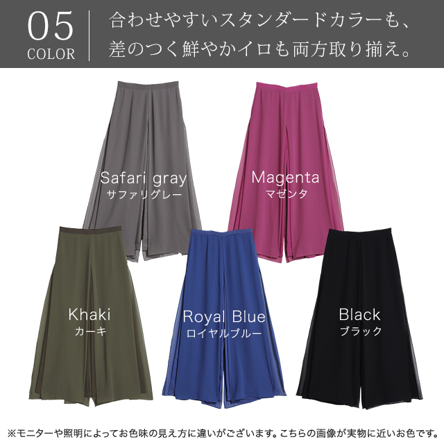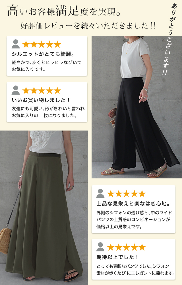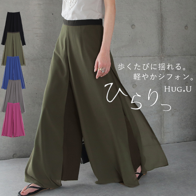 【2420円OFF】アウトレット SALE パンツ 「 ひらり、舞う。」 シフォンパンツ ワイドパンツ ガウチョパンツ レディース シフォン Aライン スカーチョ ワイド ボトムス ズボン きれいめ 大きいサイズ パラッツォパンツ 体型カバー シアー 黒 ブラック 青 冬 秋 HUG.U 秋新作