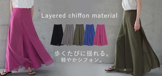 歩く度にシフォンが揺れてスカートを履いているかの様な軽やかさを演出してくれます。