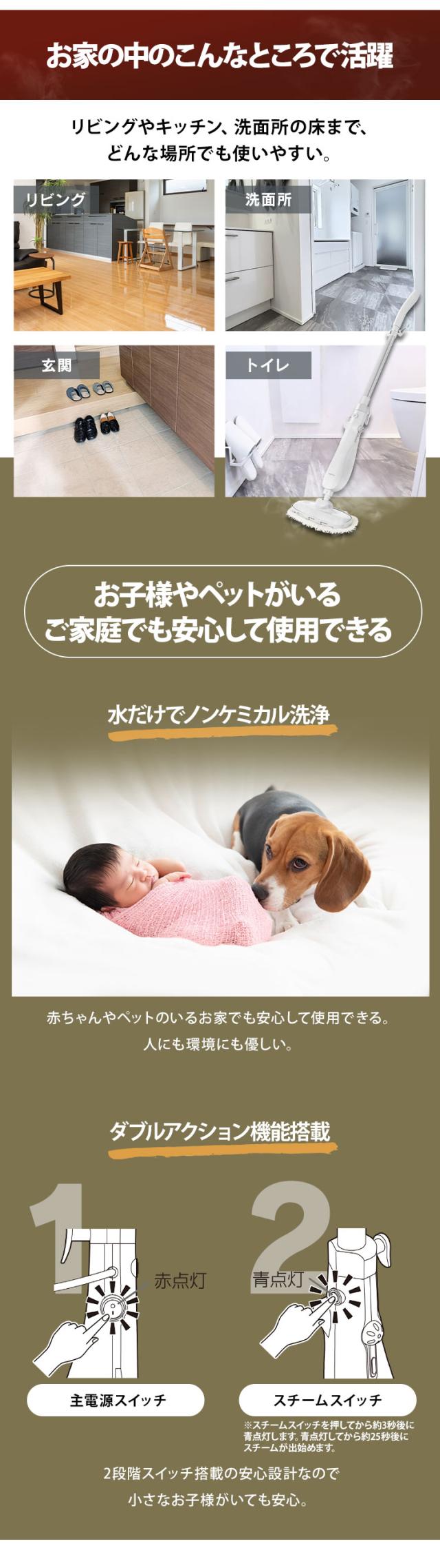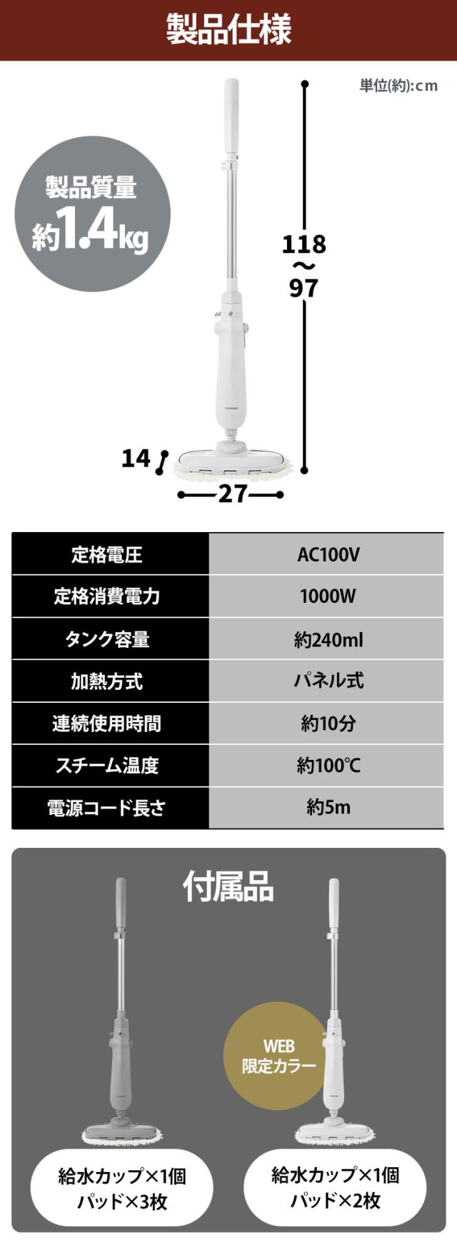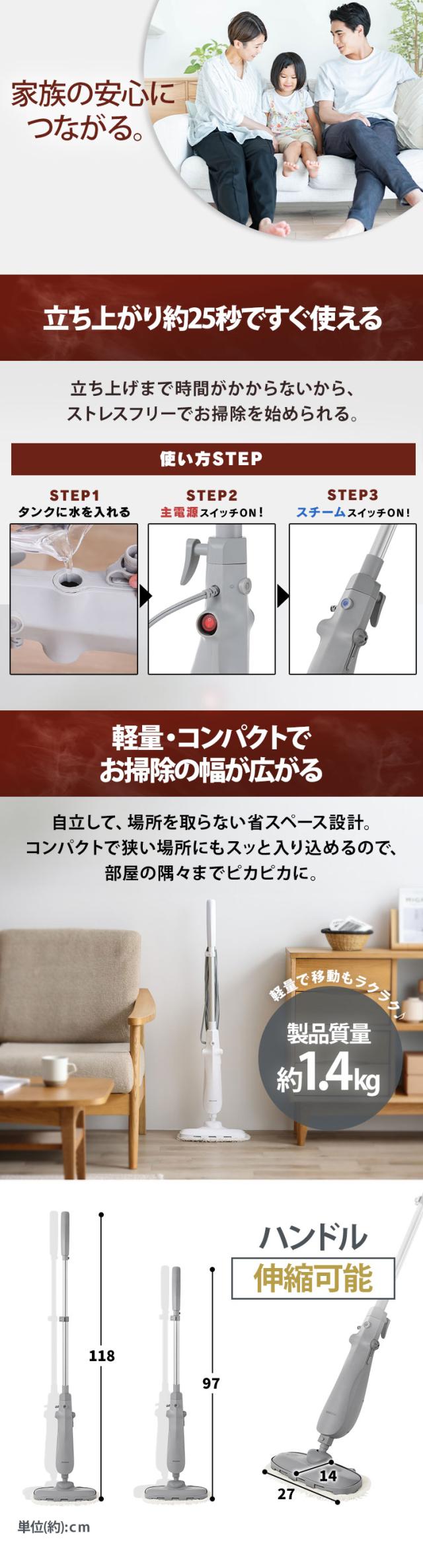[検索用:スチームクリーナー スチームモップ 床掃除 コード式 軽量 除菌 自立収納 交換用パッド付 スチーム掃除機 電動モップ 掃除 新生活 4967576732079 4967576732086]