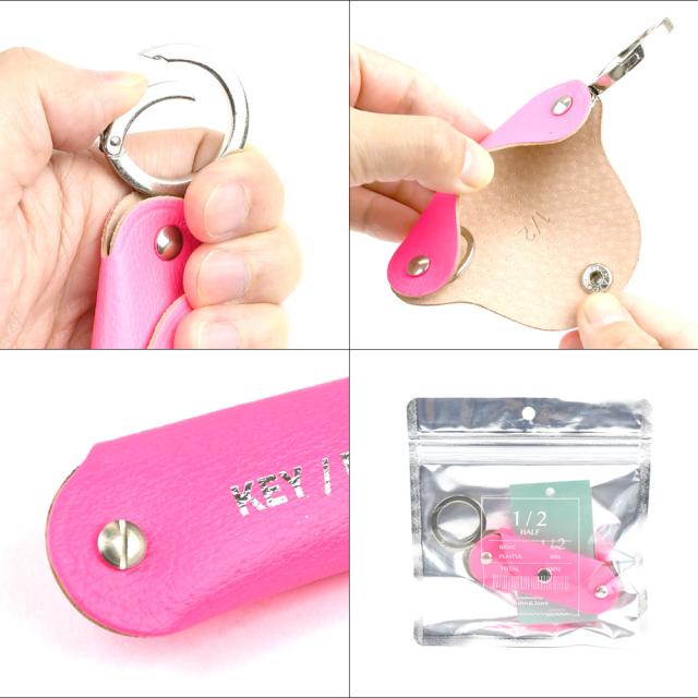 KEY/PAY キーケース 蛍光レザー 小銭入れ付き スマートキー 1/2HALF 日本製 ピッグスキン 本革 キーホルダー おしゃれ 革 コンパクト 小型 メンズ レディース ブランド ハーフ 豚革 ピッグレザー NEON ビビッドカラー John&Jane キーリング カラビナ【メール便対応可】