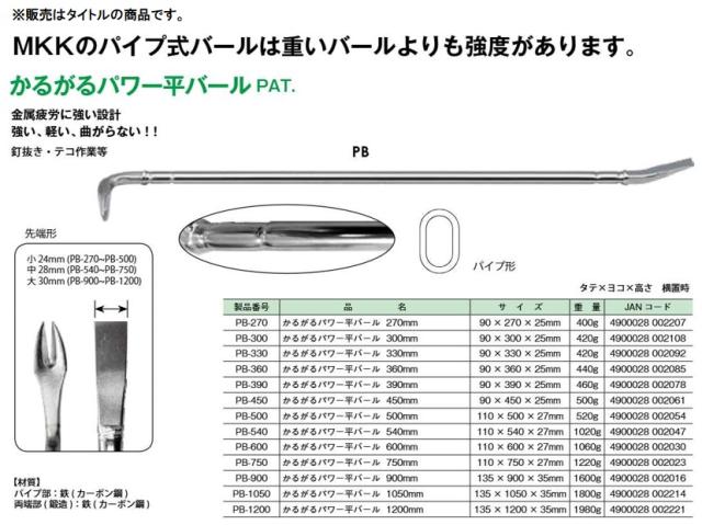 モトコマ PB-540 かるがるパワー平バール 540mm サイズ110x540x27mm MKK ’