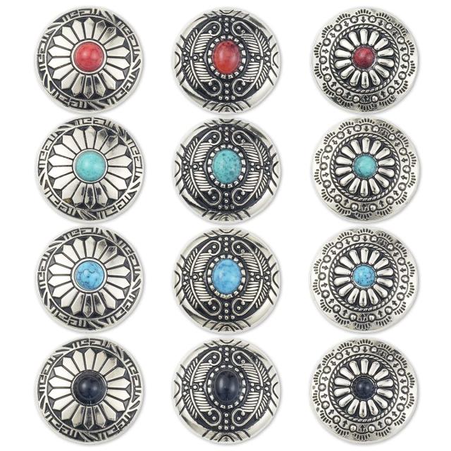 コンチョ ボタン 4色12個セット ターコイズ ネジ式 30mm レザークラフト 財布 手芸