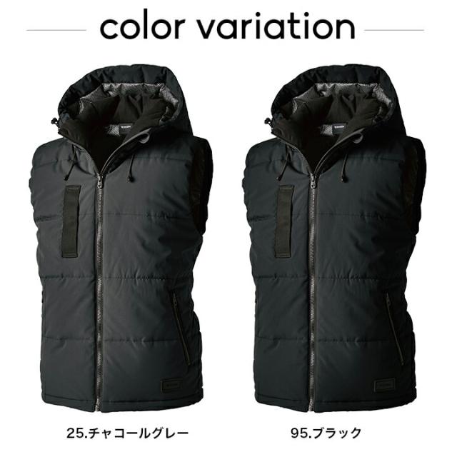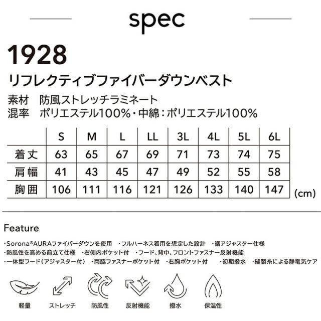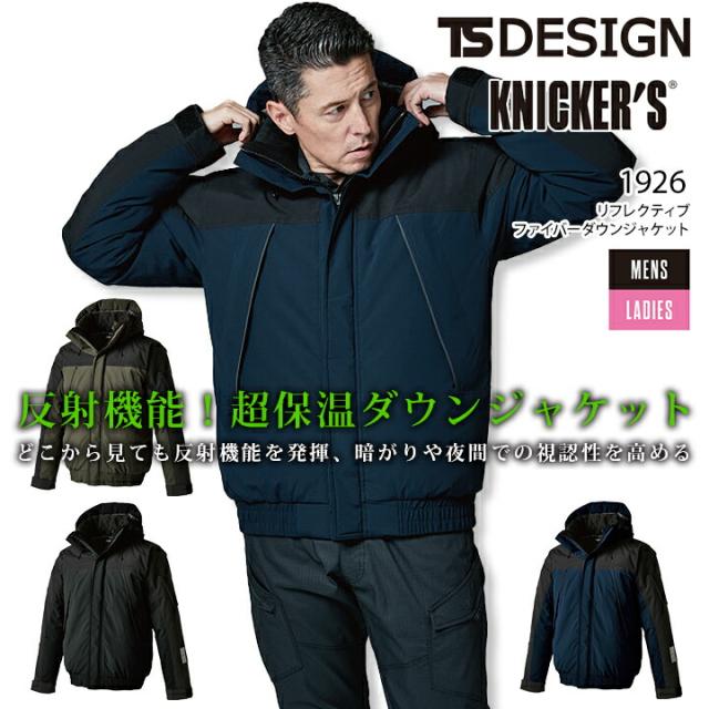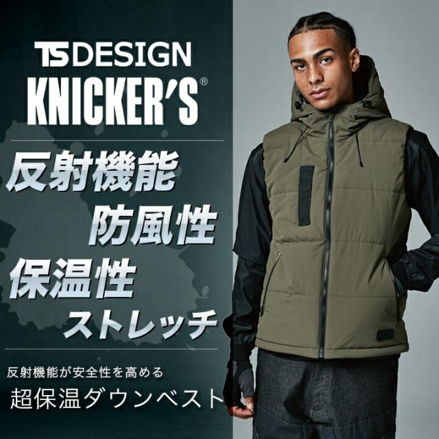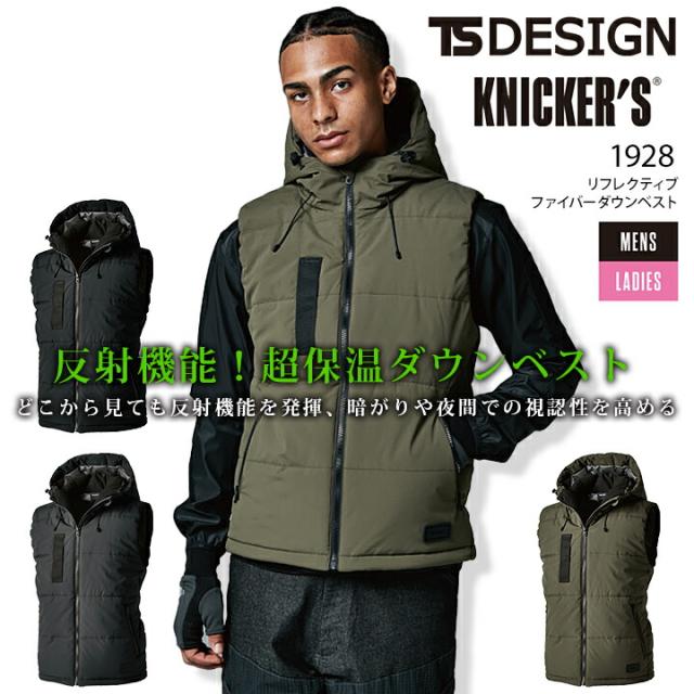TSデザイン 防寒着 ベスト リフレクティブ ファイバーダウンベスト 1928 秋冬 フード 男女兼用 メンズ レディース 軽量 ストレッチ 防風 反射 撥水 保温 防寒着 作業服 作業着 TS-DESIGN 藤和