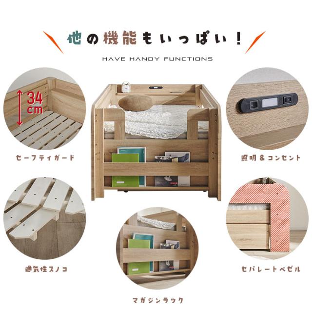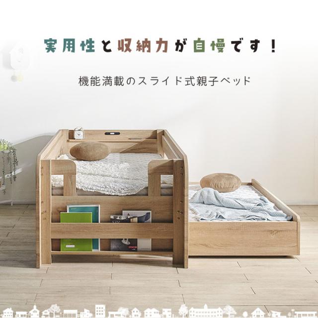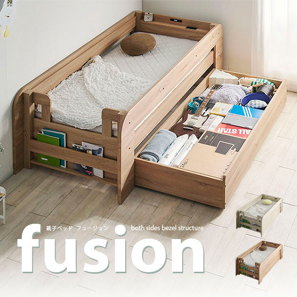 二段ベッド シングルサイズ スライド式 親子ベッド fusion(フュージョン) 2色対応 2段ベッド 単品 ロータイプ すのこベッド フレームのみ ベッド 宮付き コンセント LEDライト マガジンラック おしゃれ 子供部屋