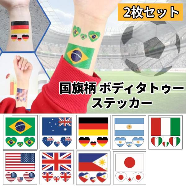 国旗 タトゥーステッカー 2枚セット 防水 大会応援 イベント お祭り サッカー 野球 ワールドカップ フェイス ボディ