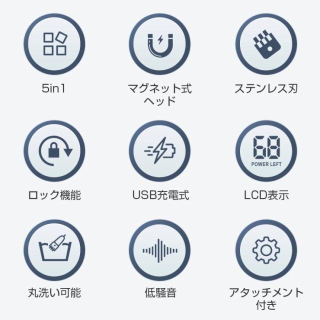 ・1台5役!電気シェーバーに加え、鼻毛カッター、体毛トリマー、ボディシェーバー、バリカン