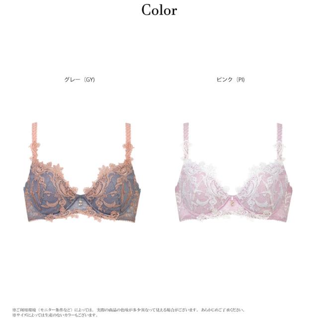 | 特徴 | Wing Lesiage 【4000シリーズ】 ふっくらまる胸 背中すっきりタイプ アールヌーボーを思わせる、 草花モチーフと優美な曲線や繊細な幾何学模様を融合させ、 刺繍ステッチが際立つレースで表現。 ストラップや土台にも贅沢にケミカルアップリケをあしらい、 まるでジュエリーを身につけたような豪華で上品なデザイン ・ストラップのアップリケはラインストーン付きで光輝く胸元を演出 ・ふっくらまるみのあるバストメイクとバックレース仕様で背中の段差を軽減 ※サイズによって柄の位置やデザインが異なる場合がございます。 ※商品によって柄の出方が異なる場合がございます。 ・3/4カップブラ ・後ろホック (B・C、 D〜F65-75)ホック2段3調節 (D〜F80)ホック3段3調節 パッド受けあり/パッドあり |