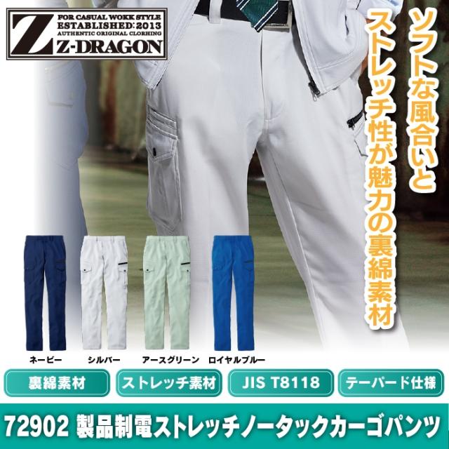 自重堂 Z-DRAGON 作業服 作業ズボン 72902 製品制電ストレッチノータックカーゴパンツ 112-120 秋冬用 作業着