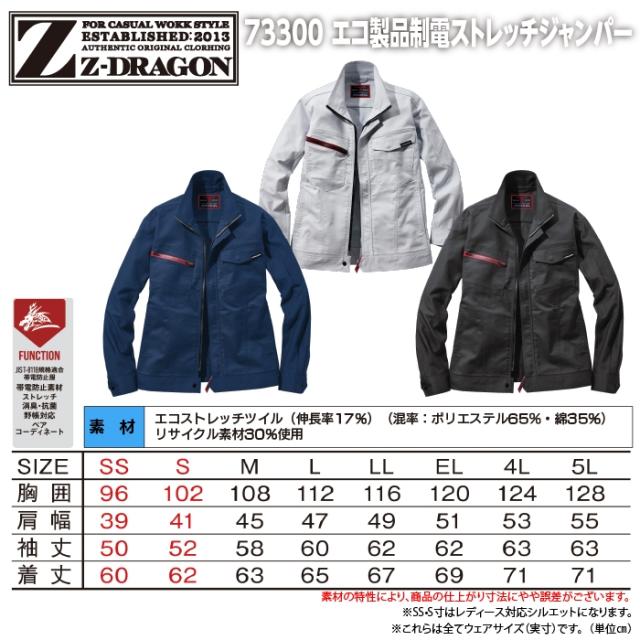 自重堂 Z-DRAGON 作業服 73300 エコ製品制電ストレッチジャンパー SS-LL 秋冬用 作業着