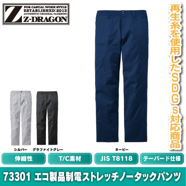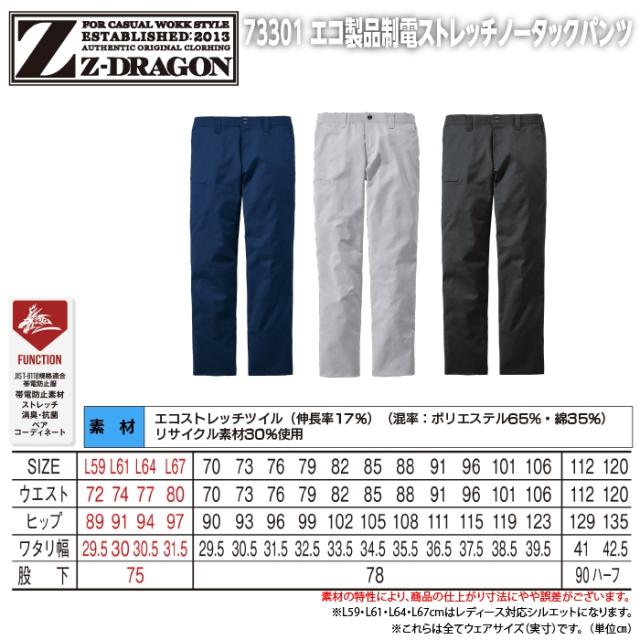 自重堂 Z-DRAGON 作業服 作業ズボン 73301 エコ製品制電ストレッチノータックパンツ 112-120 秋冬用 作業着
