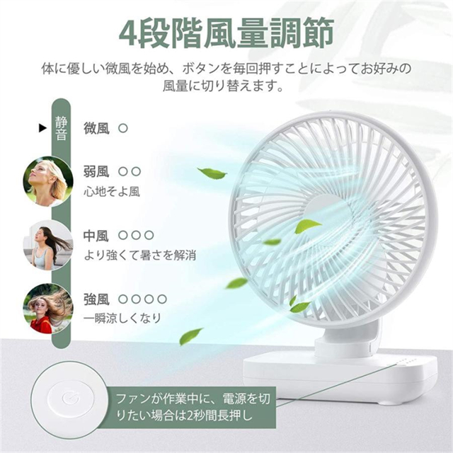 扇風機 4段階風量 卓上 USB 充電式 リビング 小型 静音 TYPE-C dcモーター 12h連続使用可能 サーキュレーター デスク 熱中症対策 おしゃれ 省エネ 部屋