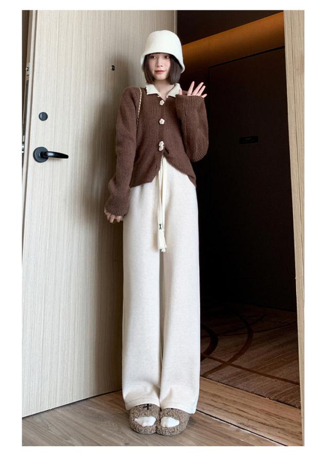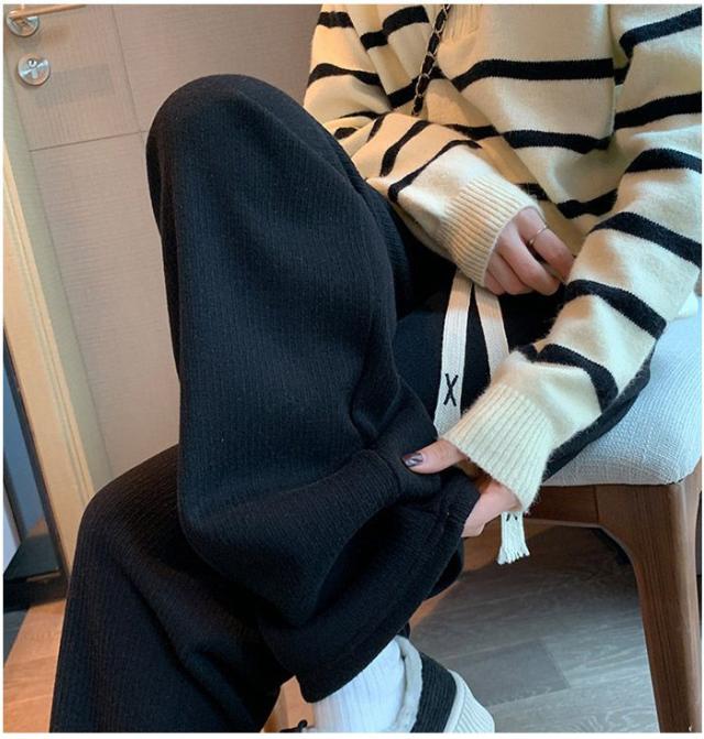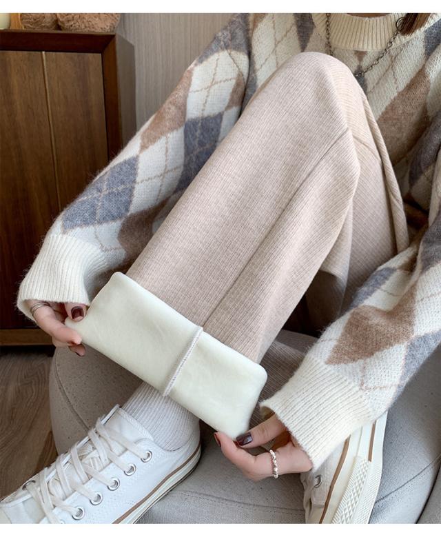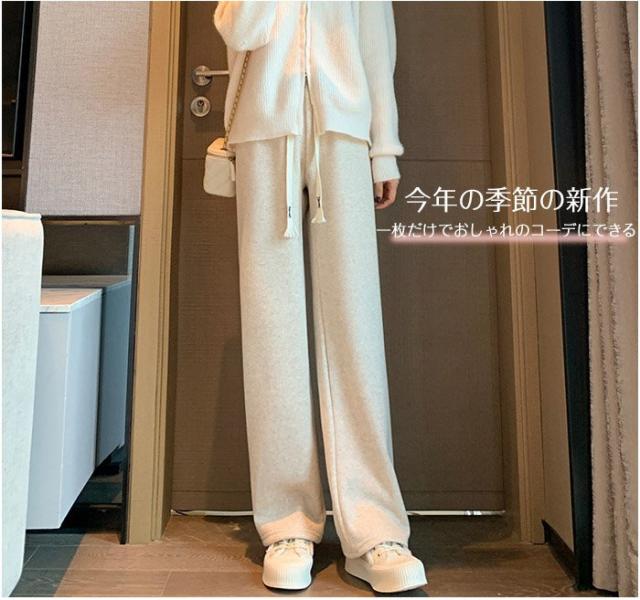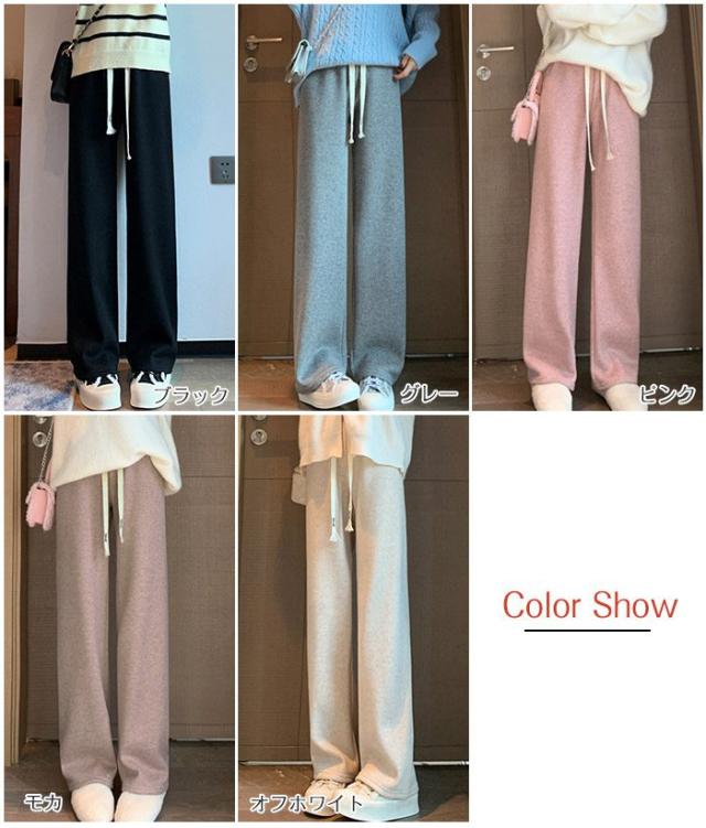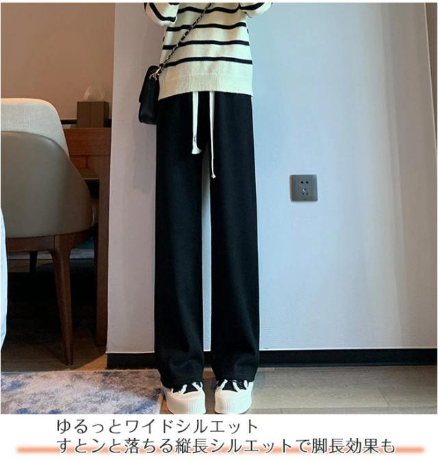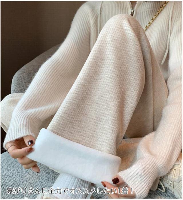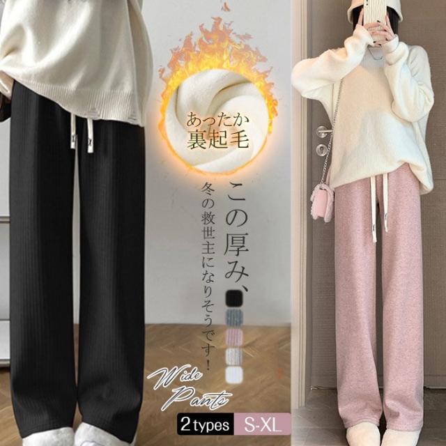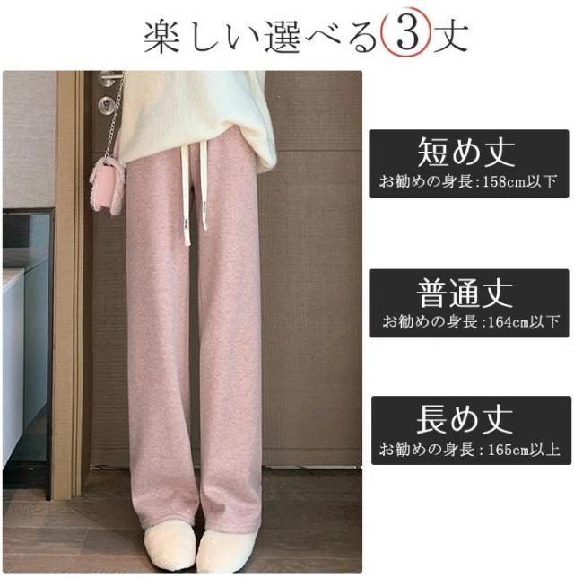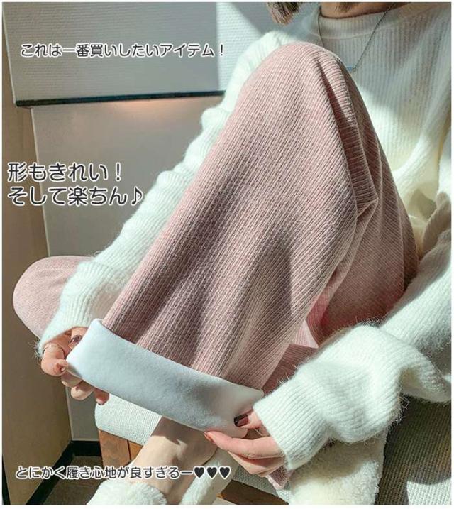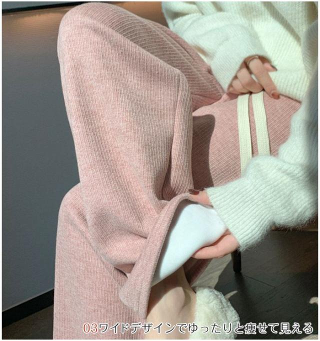 ニットパンツ 裏起毛 厚手 レディース ニット リブ パンツ ワイドパンツ 選べる丈 あったかい 防寒 低身長 高身長 秋冬 ゆったり リラックスパンツ 美脚 暖かい カジュアル 普通着 美シルエット 秋 冬 20代 30代 40代 人気 S M L XL