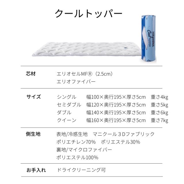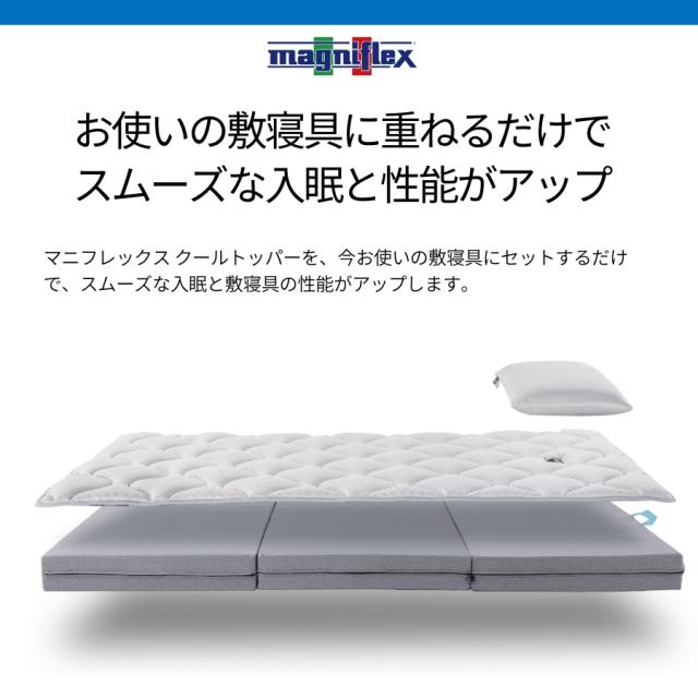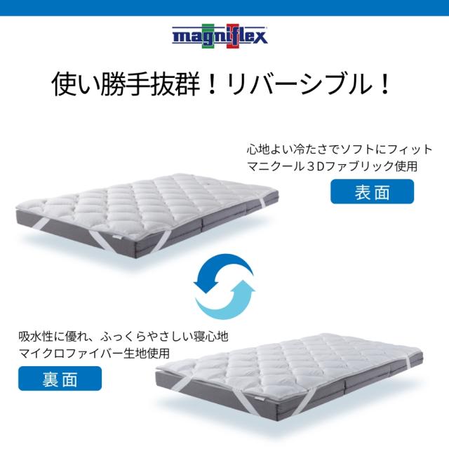 【マニフレックス クール トッパー】 マットレストッパー シングル 接触冷感 ふんわり 四隅ゴム リバーシブル 高反発 厚さ5cm 敷パッド 厚手 布団 ベッド magniflex 正規販売店