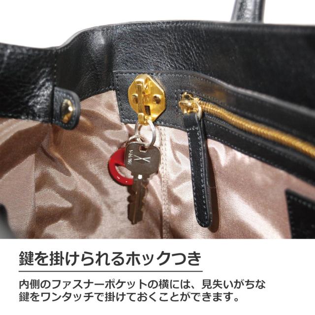 また、固定のキーフックがついており、バッグの中でよく見失いやすい鍵を掛けておくことができます。