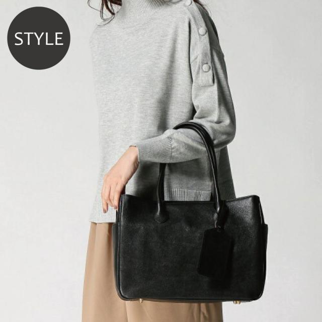 NHKのイッピンでも紹介されたオリーブレザーを使用したシンプルで上品なデザインの横型トートバッグです。