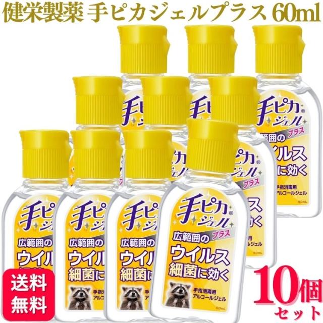 【10個セット】 健栄製薬 手ピカジェルプラス 60ml アルコールジェル 手ピカジェル 手ピカジェルプラス ウイルス 除菌 消毒 手指消毒用 送料無料