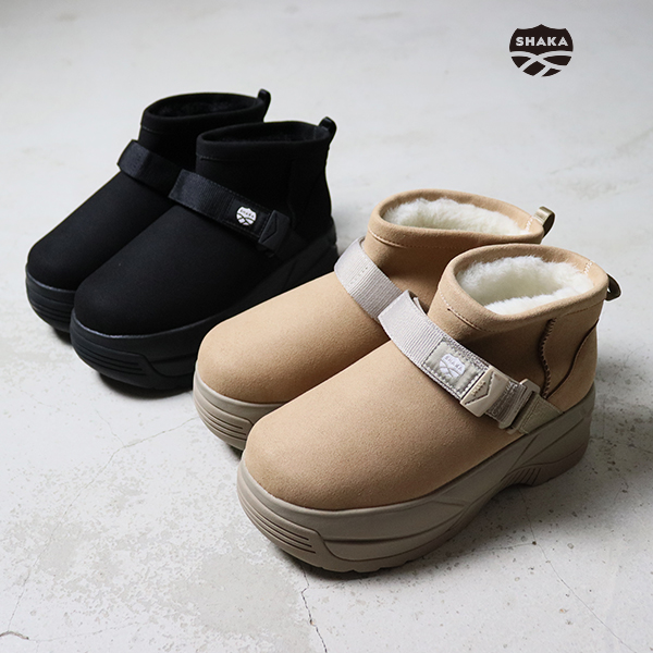 SHAKA(シャカ)の厚底ムートンブーツで冬のおしゃれを格上げ。 Y2Kのファッショントレンドで脚光を浴び、定番ながら再注目を集めるムートンブーツ。 そんなブーツをSHAKA(シャカ)らしくカジュアルかつテック感もある厚底チャンキーソールでアレンジした 新作厚底ブーツ『SHORT MOUTON BOOTIE CHUNKY (ショート ムートン ブーティー チャンキー)』。 秋冬の冷え込む季節でも、足元を暖かく保ちながらおしゃれを楽しみたい方にぴったり。 SHAKA(シャカ)ならではのこだわりが詰まった厚底ムートンブーツは、 冬のワードローブに欠かせないアイテムとなることでしょう。 | ||||||