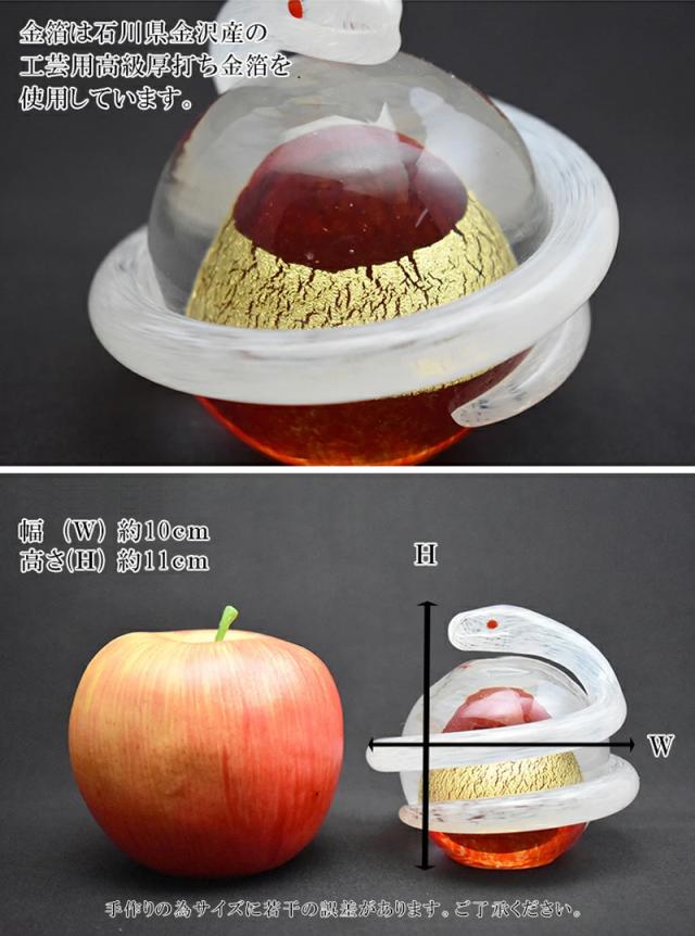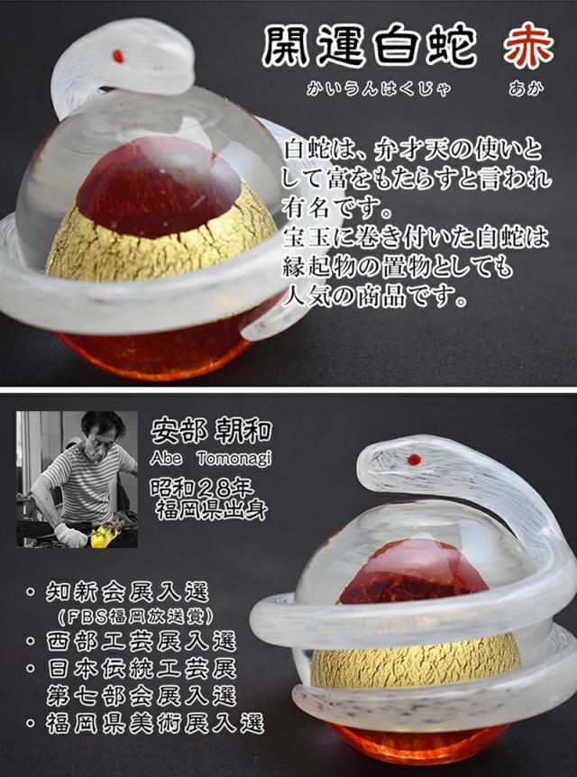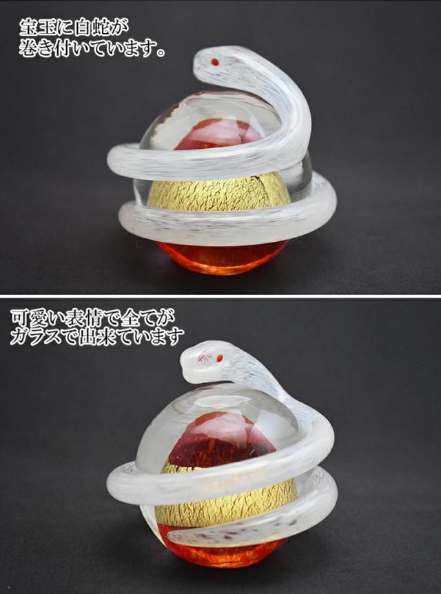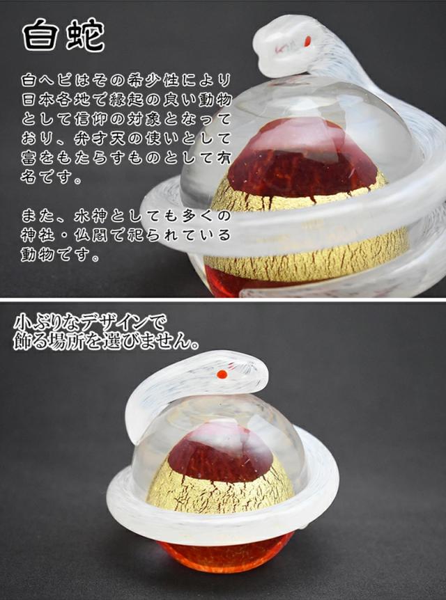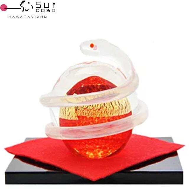 【博多びーどろ 粋工房】ガラス製 置物「開運白蛇(赤)」SO-113RE 約10cm×11cm【日本製】風水 金運 縁起物 お祝い 招福 巳(み) み年 巳年 へび年 ヘビ年 へび ヘビ 蛇 干支飾り 令和八年 令和8年
