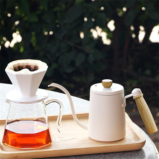 ドリップケトル目盛付き 天然木柄 蓋付き ステンレス アウトドア コーヒー器具 プレゼント ラッピング 贈り物 北欧風 キャンプ 新生活 オフェス カフェ 喫茶店 お茶用品 父の日