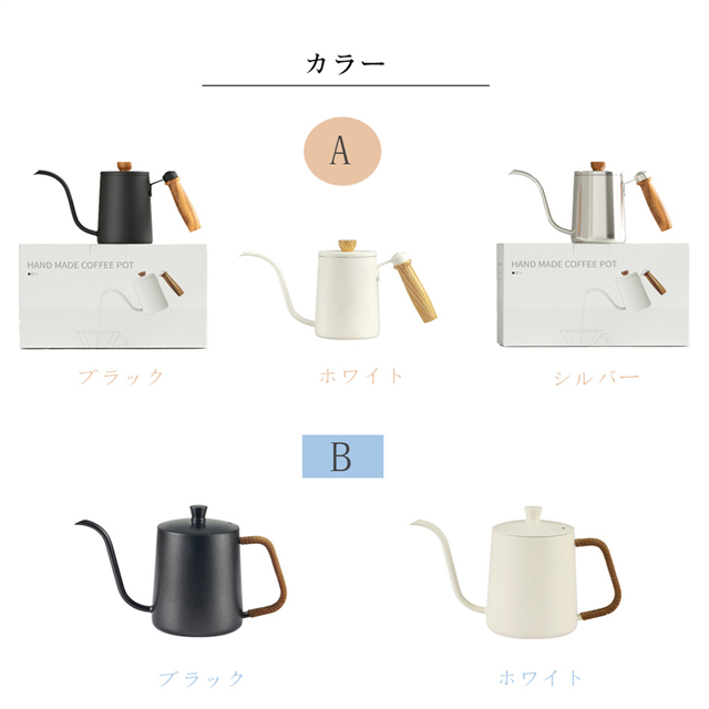 ドリップポット コーヒードリップポット ステンレス 細口 コーヒーポット ポット コーヒー グッズ ケトル アウトドアケトル キャンプ用 コーヒーケトル ハンドドリップ器具 ブラック シルバー 600ml 細口 ステンレス フタ付き コーヒーやかん コーヒー グッズ