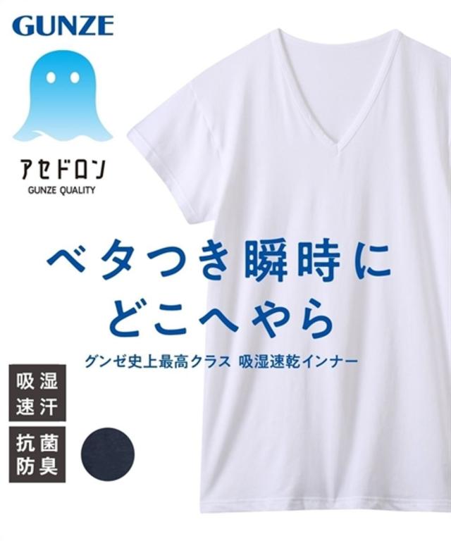 【GUNZE アセドロン】汗取りパッド付VネックTシャツインナー(吸湿速乾・抗菌防臭)