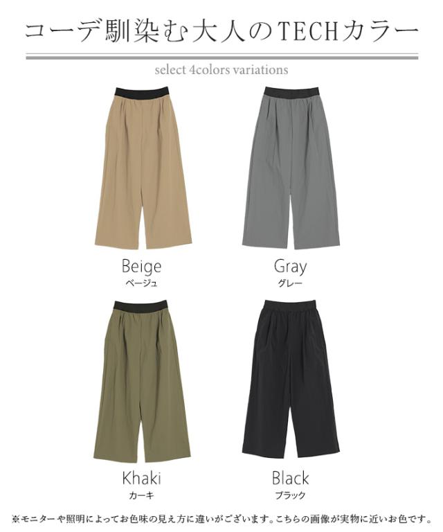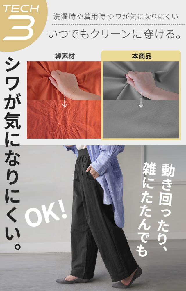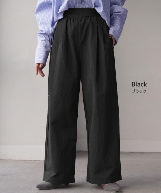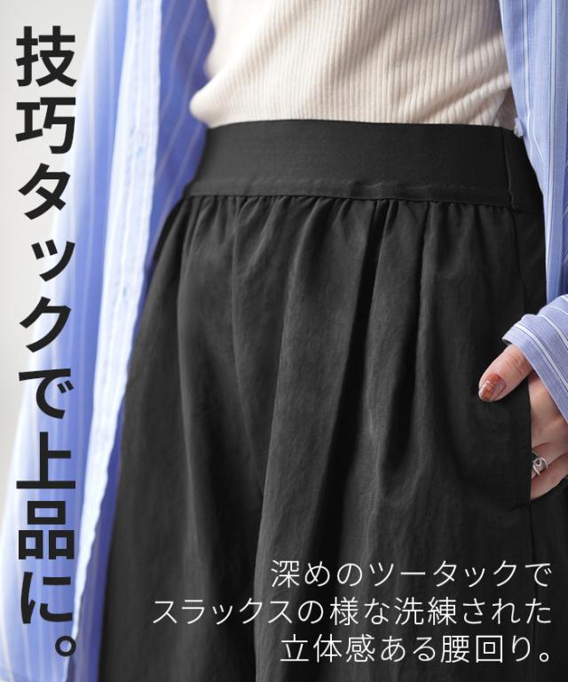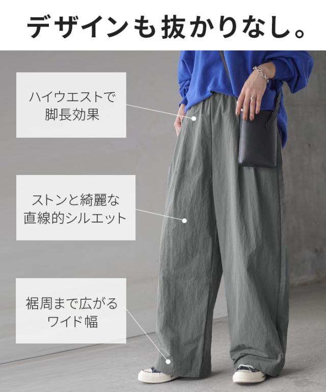 【冬SALE】 パンツ ワイド 撥水 ナイロン タックパンツ レディース 軽量 シワになりにくい タック ワイドパンツ ロング イージーパンツ 体型カバー ボトムス ストレート ズボン ゆったり ハイウエスト 美脚 大きいサイズ 体型カバー 雨 黒 グレー 春 夏 HUG.U