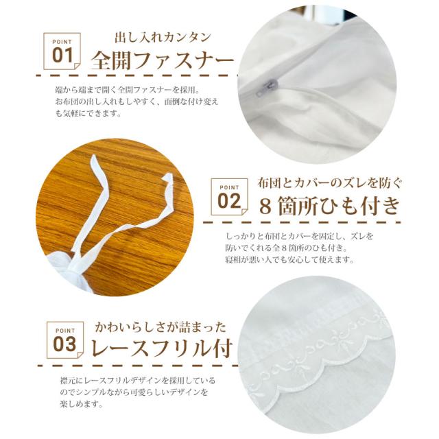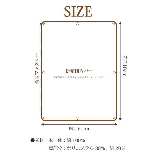2枚組 掛け布団カバー 掛布団カバー 羽毛布団専用兼掛け布団カバー 羽毛専用兼布団カバー シングルロングサイズ レース付き ヒモ付き 綿100% 150×210cm R6621