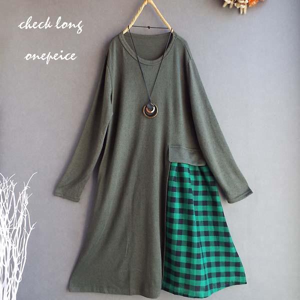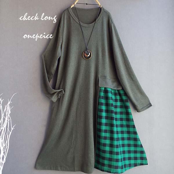 ワンピース レディース ギンガムチェック 切替 フレアー ゆったり 体型カバー 30代 40代 50代 60代 s3729
